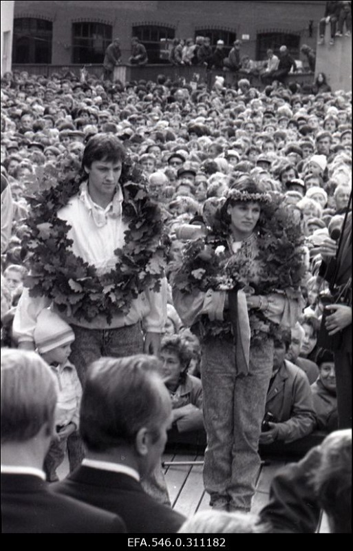 А вот что не получилось в «Нашей Эрике», а в «Калеве» получилось — так это образ времени действия. Как будто то, что происходило в 1987–88 годах, вовсе не коснулось персонажей фильма. Можно, конечно, возразить, что триумфальная встреча Эрики в Таллинне — это и есть картина времени. Но — когда происходит встреча? Если после победы в Сеуле — так тогда ещё сине-чёрно-белые знамёна не могли так свободно реять в центре столицы пока ещё Эстонской ССР. Вот после Барселоны — безусловно! Будем считать, что авторы фильма разом преодолели четырёхлетнее пространство, соединив два времени. Тем более что финал получился масштабным, торжественным и трогательным.