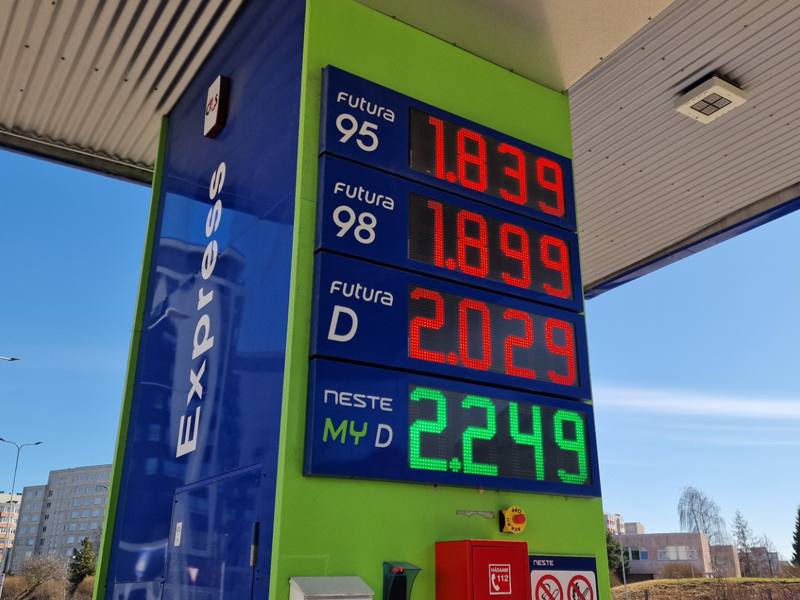 20 марта цены на эти виды топлива, как писал портал Tribuna.ee, были 1,839 евро за литр, 1,899 евро за литр и 2,029 евро за литр соответственно. Как раз тогда цена на дизель превысила отметку в 2 евро.