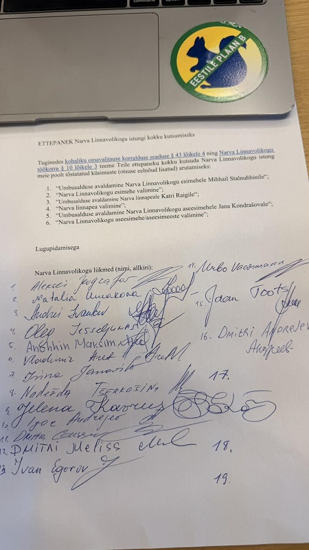 Он отметил, что в последние дни распространяются разговоры о том, что у оппозиции якобы нет достаточного количества подписей для вотума недоверия мэру Нарвы Катри Райк и председателю горсобрания Михаилу Стальнухину, поэтому, чтобы прекратить эти спекуляции, он опубликовал фото подписей.