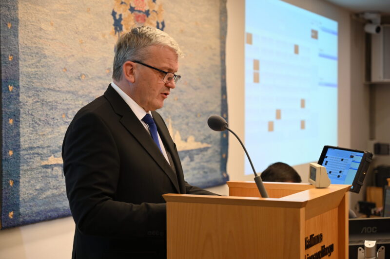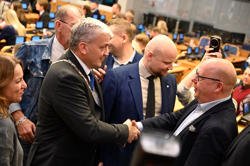 Заседание началось с того, что депутат Таллиннского горсобрания, старейшина Нымме Кармо Кури (Социал-демократическая партия) предложил на пост мэра Таллинна председателя партии Isamaa Урмаса Рейнсалу. К этой идее присоединился и Пяртель-Пеэтер Пере из Партии реформ.