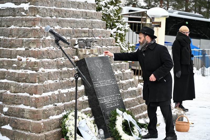 Затем главный раввин Эстонии Шмуэль Кот зачитал молитву и возложил камень на могилу.