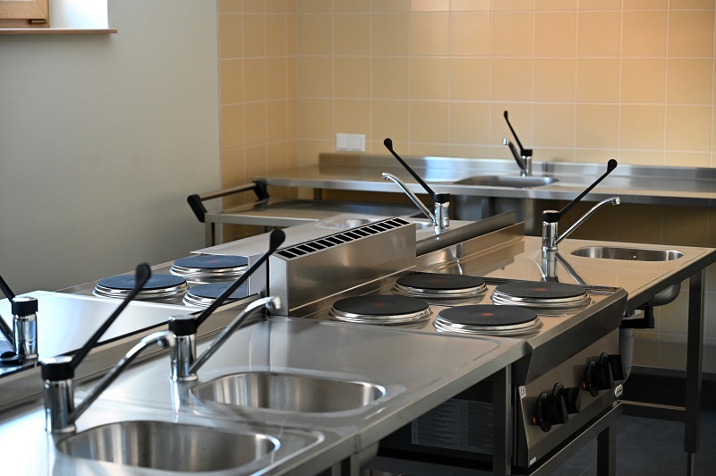 В помещении суповой кухни расположена обеденная зона, учебная кухня, а также служебные помещения.