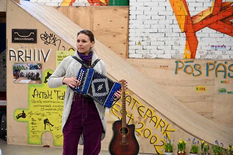 Звучала karmoška, на которой играла певица и автор песен Ану Тауль (она же сочинила в этом году специальную толочную песню для «Сделаем!», которую исполнила позже, взяв в руку гитару).