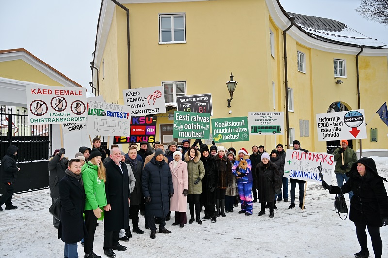 Центристы выступают за восстановление бесплатного общественного транспорта в уездах и приглашали желающих поддержать акцию протеста под лозунгом «Правительство, прекрати грабить детей и пенсионеров!» («Valitsus, lõpeta laste ja pensionäride röövimine!»). Правительство реформистов, как отмечают в оппозиционной партии, ввело налог на автомобили и сейчас корпит над тем, чтобы сделать общественный транспорт ещё дороже.