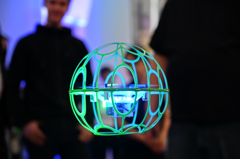 Футбол на дронах — высокотехнологичный командный вид спорта, в котором пилоты управляют квадрокоптерами в защитных сферах, стараясь забить гол, пролетев через кольцо-ворота соперника. Игра проходит в закрытых сеткой аренах, обычно командами по 5 человек, напоминая смесь футбола и квиддича, вымышленной игры из романов о Гарри Поттере.