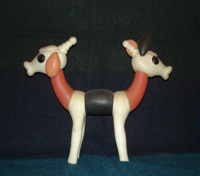 Да, у него две головы: одна спереди, другая сзади. Когда ему хочется спать, то сначала спит одна голова, а потом другая. Сразу же весь он не спит никогда. Одна голова спит, другая глядит по сторонам, чтобы не подкрался охотник. Вот почему ни одному охотнику не удавалось поймать тянитолкая, вот почему ни в одном цирке, ни в одном зоологическом парке этого зверя нет».