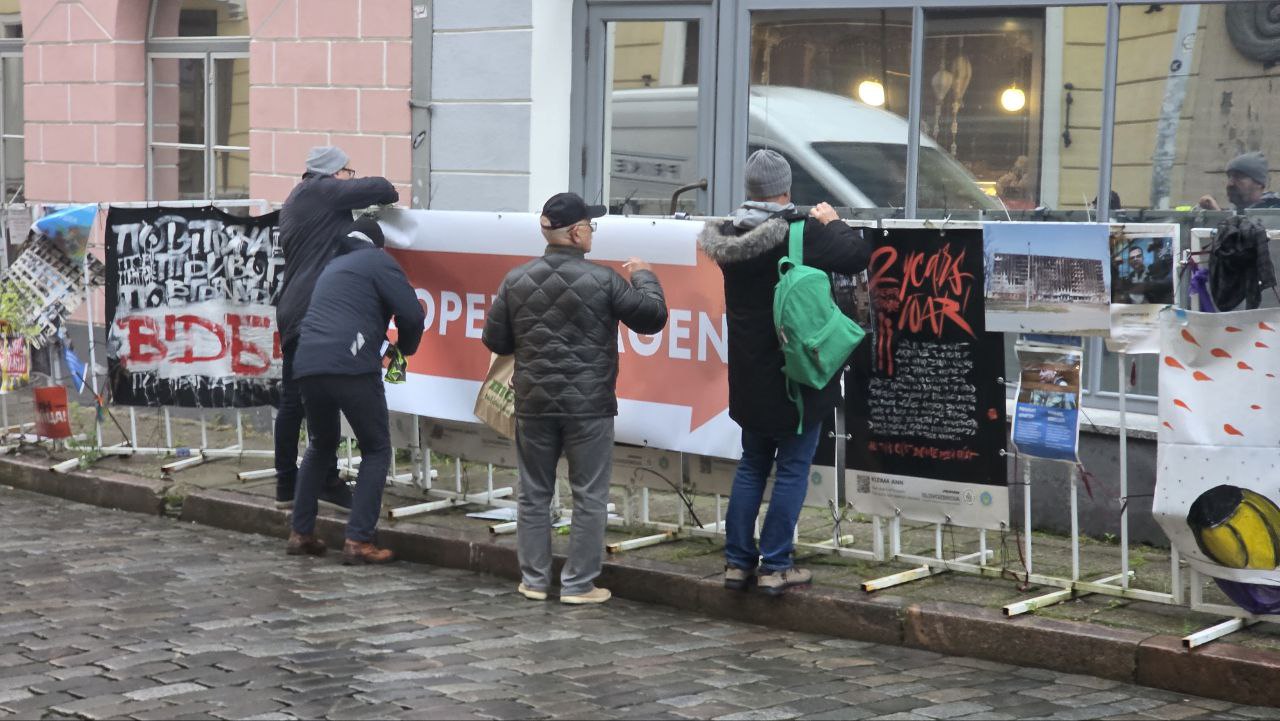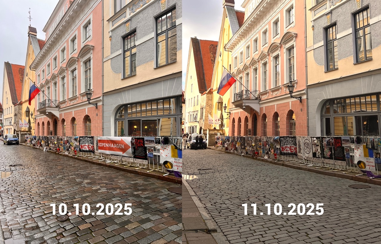 Исходя из этого, кандидаты от партии KOOS решили выразить свой собственный протест и 10.10.25 разместили на временных ограждениях перед Посольством РФ своё «протестное сообщение», суть которого в том, чтобы весь этот мусор был бы убран из Старого города и отправлен куда подальше, хоть в Копенгаген, столь близкий сердцу сегодняшнего мэра Таллинна Евгению Осиновскому.