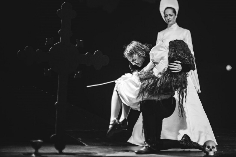 Гамлет — Урсель Тильк, Офелия — Теэле Пярн. Фото: Gabriela Järvet (Eesti Draamateater)