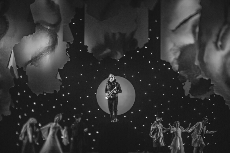 Финал спектакля «Гамлет». Прощальные звуки саксофона. Фото: Gabriela Järvet (Eesti Draamateater)