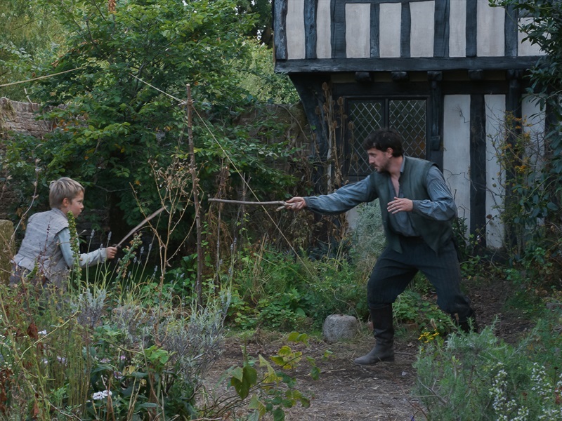 В первых кадрах фильма герою Пола Мескала явно не 18 лет, но он всё ещё не самодостаточен. Судя по кровоточащей ссадине на лице, у него нелады с отцом, и тот, если не в духе, не преминет поднять руку на непутёвого, как он считает, сына. Перчаточник Джон Шекспир видит, что Уилл не сможет унаследовать семейное дело, не способен прошить кожу аккуратным стежком. Уилл зарабатывает деньги (между прочим, чтобы расплатиться с отцовскими долгами), обучая фермерских сыновей латыни. Джон Шекспир и это считает никчёмным занятием: мальчишки вырастут, станут такими же овцеводами, как их отцы, учёность им не пригодится.