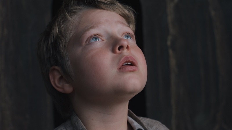 Мы знаем, что первым исполнителем роли Принца Датского был Ричард Бербедж, ему тогда было 33 года, но Хлоя Чжао создаёт легенду — и в её фильме в роли Гамлета выходит на сцену юный актёр, невероятно похожий на Хэмнета — если бы мальчик дожил до двадцати лет, он стал бы именно таким. (В этой роли — старший брат Джекоби Джупа, Ноа Джуп.) А в роли Призрака — Уильям, его лицо облеплено белым, похожим на известь, гримом, а в глазах — боль.