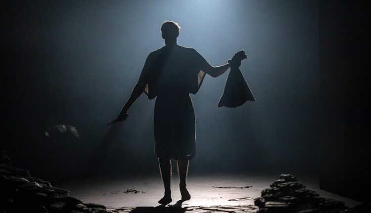 Ахиллес (Ян Эренберг). Сцена из спектакля «Ифигения. Агамемнон. Электра». Фотo: Сийм Вахур (предоставлено Линнатеатром)