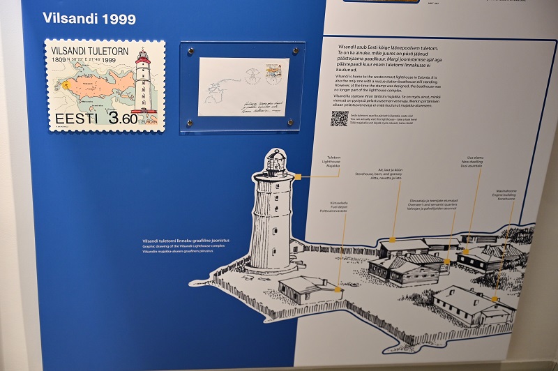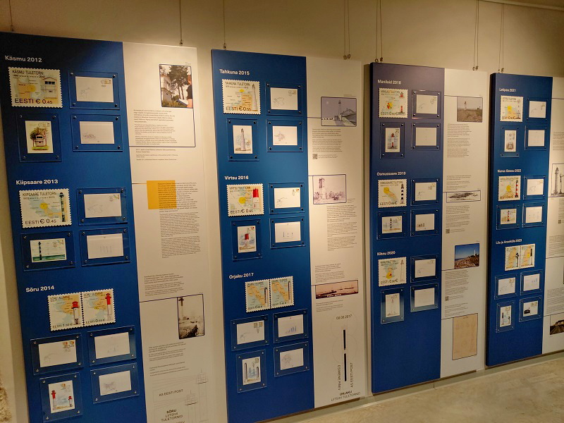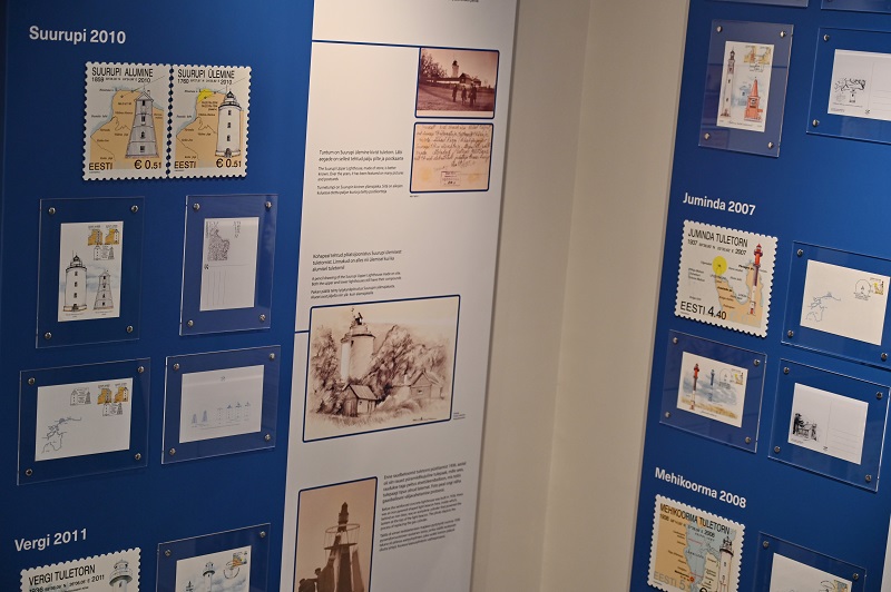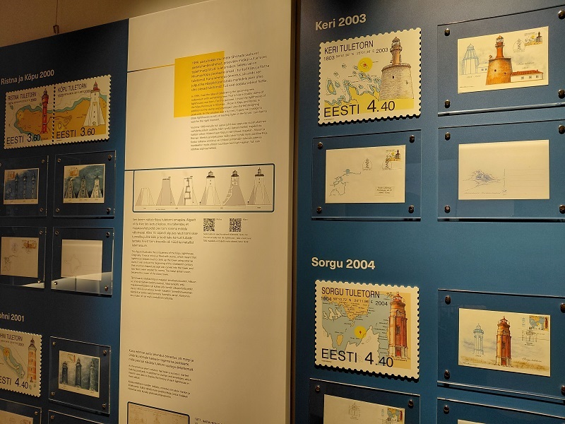 Концепция выставки «Маяки на почтовых марках Эстонии» тщательно продумана. На её стендах можно видеть эскиз каждой марки с изображением маяка, его названием, описанием и историей, а также указанным местом на карте, где он установлен. Рядом демонстрируется напечатанная марка уже без всяких мелких деталей, потому что при размере 27 на 33 миллиметра разглядеть их на ней сложно. Соответственно, и использовать марку в качестве навигационного пособия нежелательно.