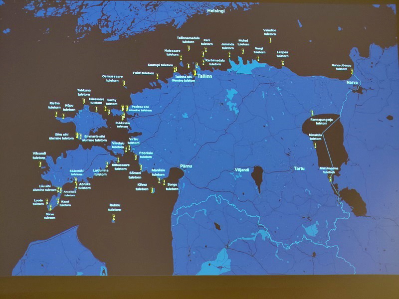 Карта Эстонии с обозначенными на ней действующими маяками. Фото А. Айсберга