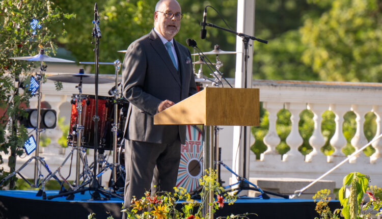 Президент Эстонской Республики Алар Карис произнёс речь в 33-ю годовщину восстановления независимости Эстонии, 20 августа 2024 года, в Кадриоргском розарии.