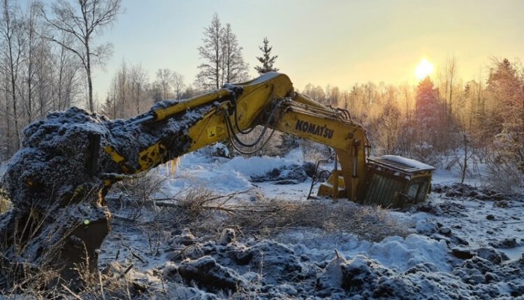 Так, в нынешних январе и феврале Эстонию накрыла продолжительная полоса сильных морозов, что дало возможность заняться работами по мелиорации лесов и земель, выполнять которые в тёплое и влажное время года достаточно сложно в связи с весом тяжёлой техники и мягкостью грунта. Тем не менее иной раз даже действительно сильные морозы не способны проморозить землю в достаточной степени для того, чтобы быть в состоянии выдерживать тяжёлые машины. Именно по этой причине дорогой гусеничный экскаватор Komatsu во время работ провалился через мягкий торф в болото.