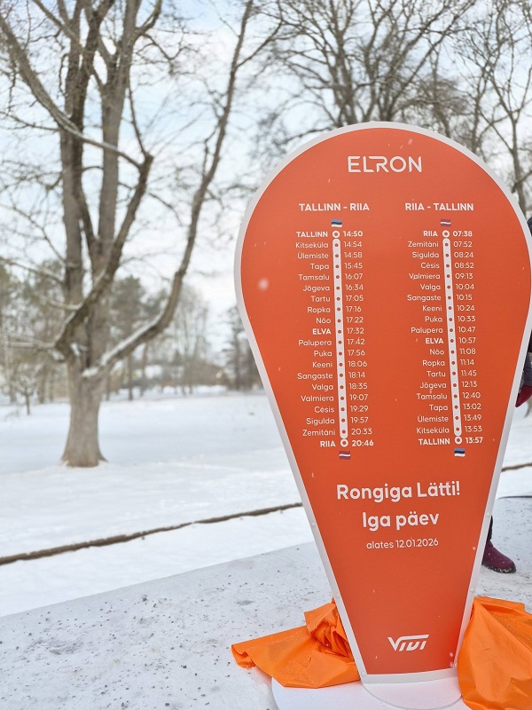- С 12 января поезд Таллинн — Тарту — Рига будет отправляться из Таллинна в 14:50, из Тарту в 17:05 и прибывать в Ригу в 20:46.