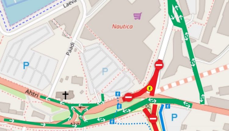 Непосредственно перед перекрёстком будет закрыта часть улицы Ахтри со стороны торгового центра Nautica. Проехать через перекресток можно будет по противоположной стороне улицы Ахтри (направление в сторону Туукри), где будут открыты по одной полосе движения в обе стороны.