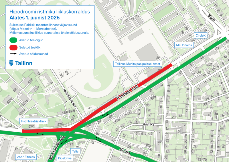 Реконструкция перекрёстка начнётся 5 мая и продлится около полутора лет. На время строительства организация движения в этом районе изменится. После завершения работ Палдиское шоссе станет безопаснее, а новый квартал Хиподрооми получит удобную транспортную связь с городом.