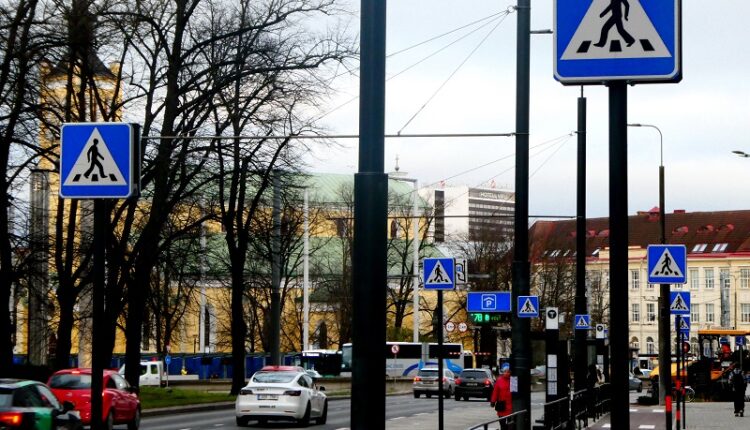 Таллинн демонтирует 10 знаков пешеходного перехода с велосипедной дорожки на бульваре Каарли — останется всего два.