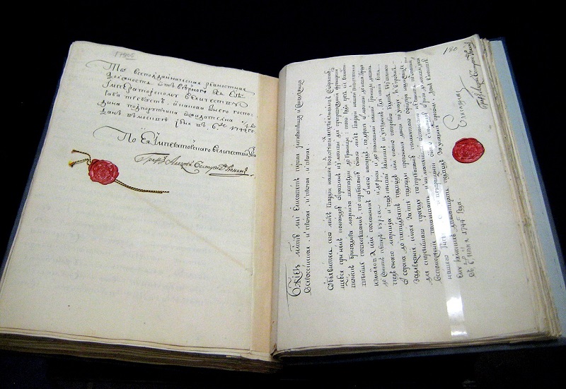 Дело о высылке из России французского посла маркиза Ж. И. Тротти де ла Шетарди. Июнь 1744. Автографы Елизаветы Петровны и А.П. Бестужева-Рюмина. Фото: Wikipedia / Shakko (Sofia Bagdasarova)