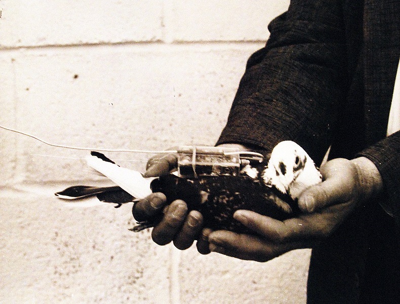 Система, которая впервые сделала возможным отслеживание птицы в полёте и предоставила ВМС США уникальный исследовательский инструмент. При первом применении системы 26 мая 1961 года почтовый голубь был отслежен во время 20‑мильного полёта до своего голубятника в районе Филадельфии. Фото: National Museum of the U.S. Navy — 330-PSA-118-61 (USN 710903)