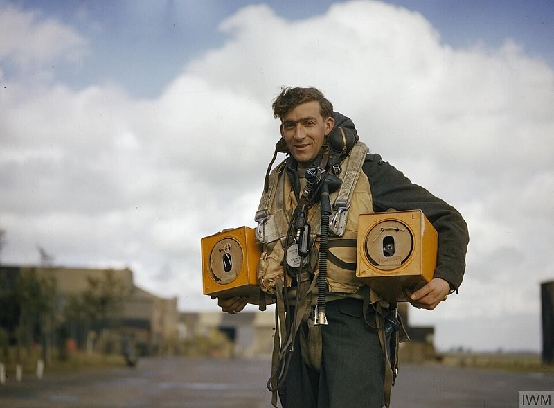 Лётчик бомбардировщика «Avro Lancaster» с коробками с почтовыми голубями. Англия, октябрь 1942 года. Фото: Royal Air Force official photographer (Wikimedia Commons)