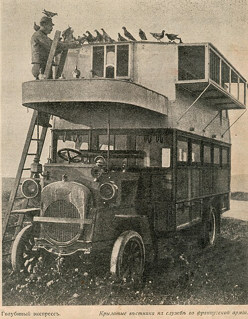 Голубиный автомобиль французской армии. Фотография в журнале «Нива», 1916 год. Изображение: Wikimedia Commons