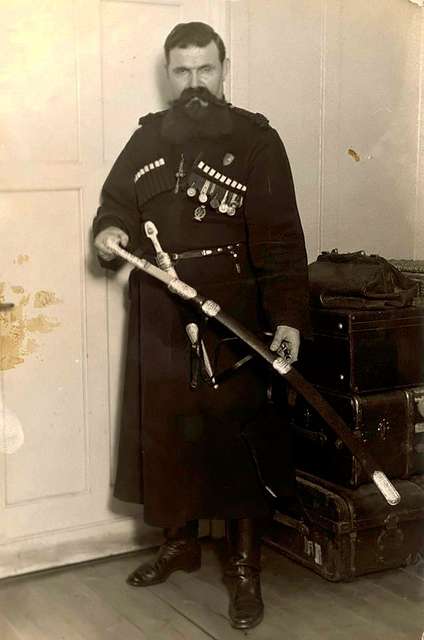 Телохранитель императрицы везде появлялся в казачьей форме, с шашкой, кинжалом и револьвером, производя на датских улицах фурор. Он даже спать ложился у дверей её покоев, раскинув на инкрустированном дворцовом паркете бурку и положив в изголовье револьвер со взведённым курком — «ведь большевики могли попытаться проникнуть даже в тихий Копенгаген, чтобы разделаться с его госпожой»!